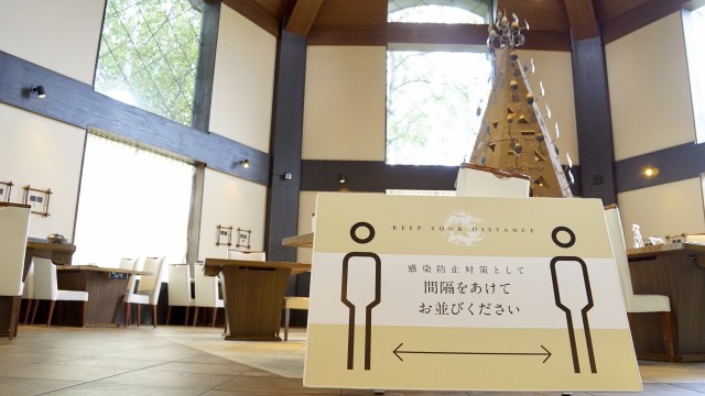 レストラン内は座席数を減らし、それぞれのテーブルの間隔をあけレイアウトをしています。
