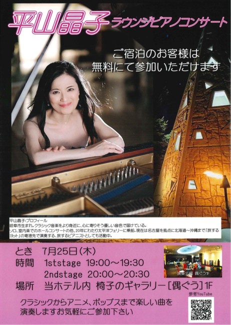<7/25>平山晶子ラウンジピアノコンサートのお知らせ