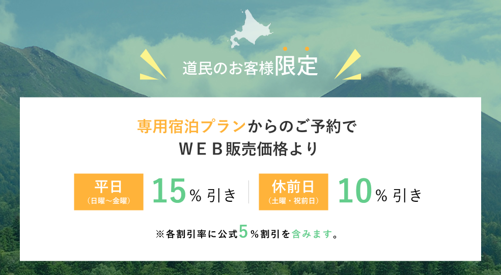 道民専用宿泊プランからのご予約で、WEB販売価格より